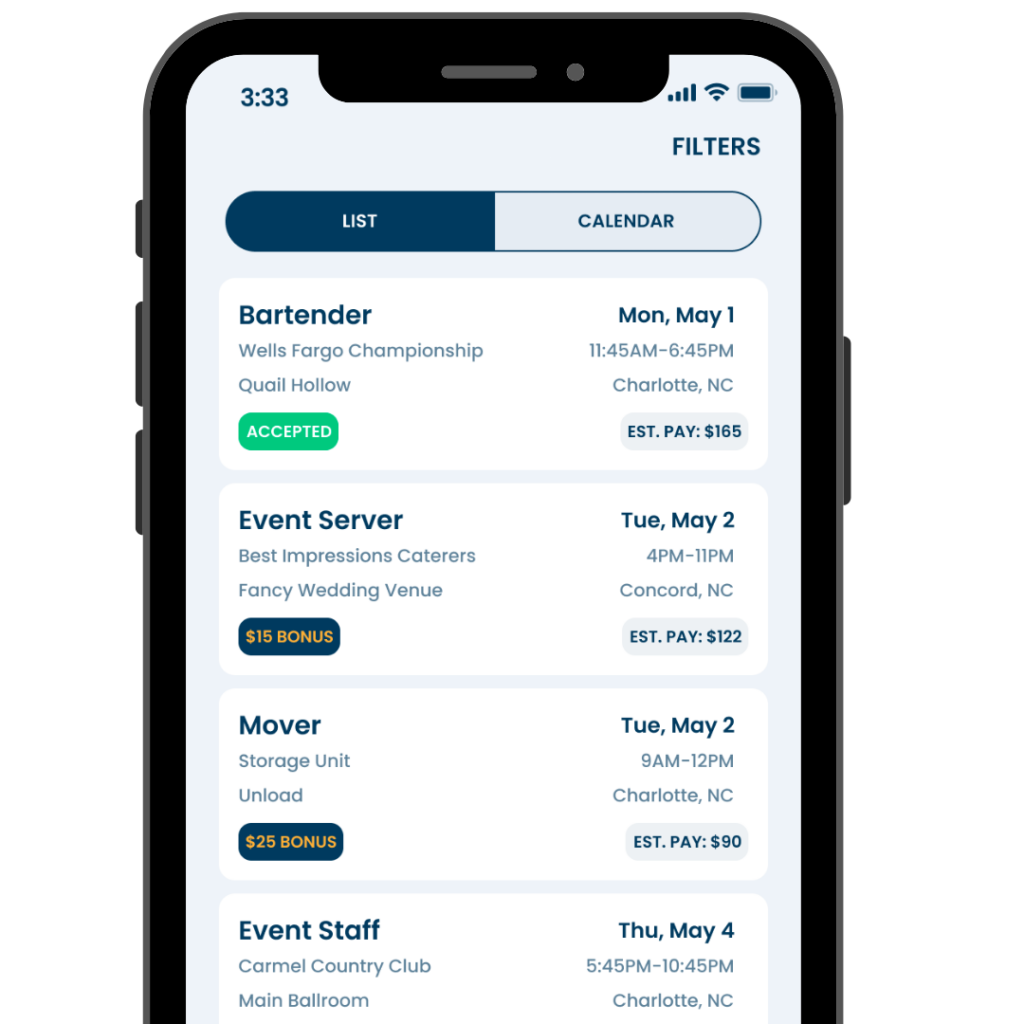 You will receive payment for each event that you work, paid out weekly!